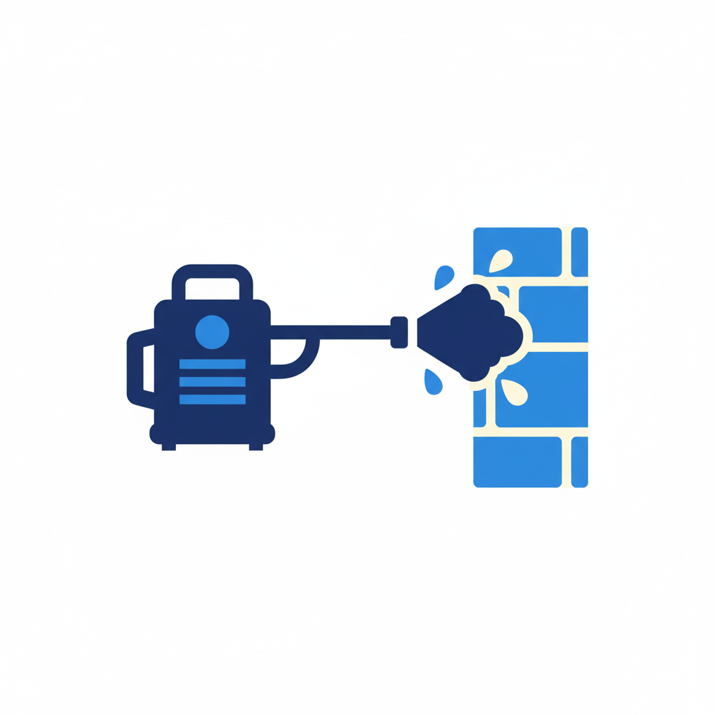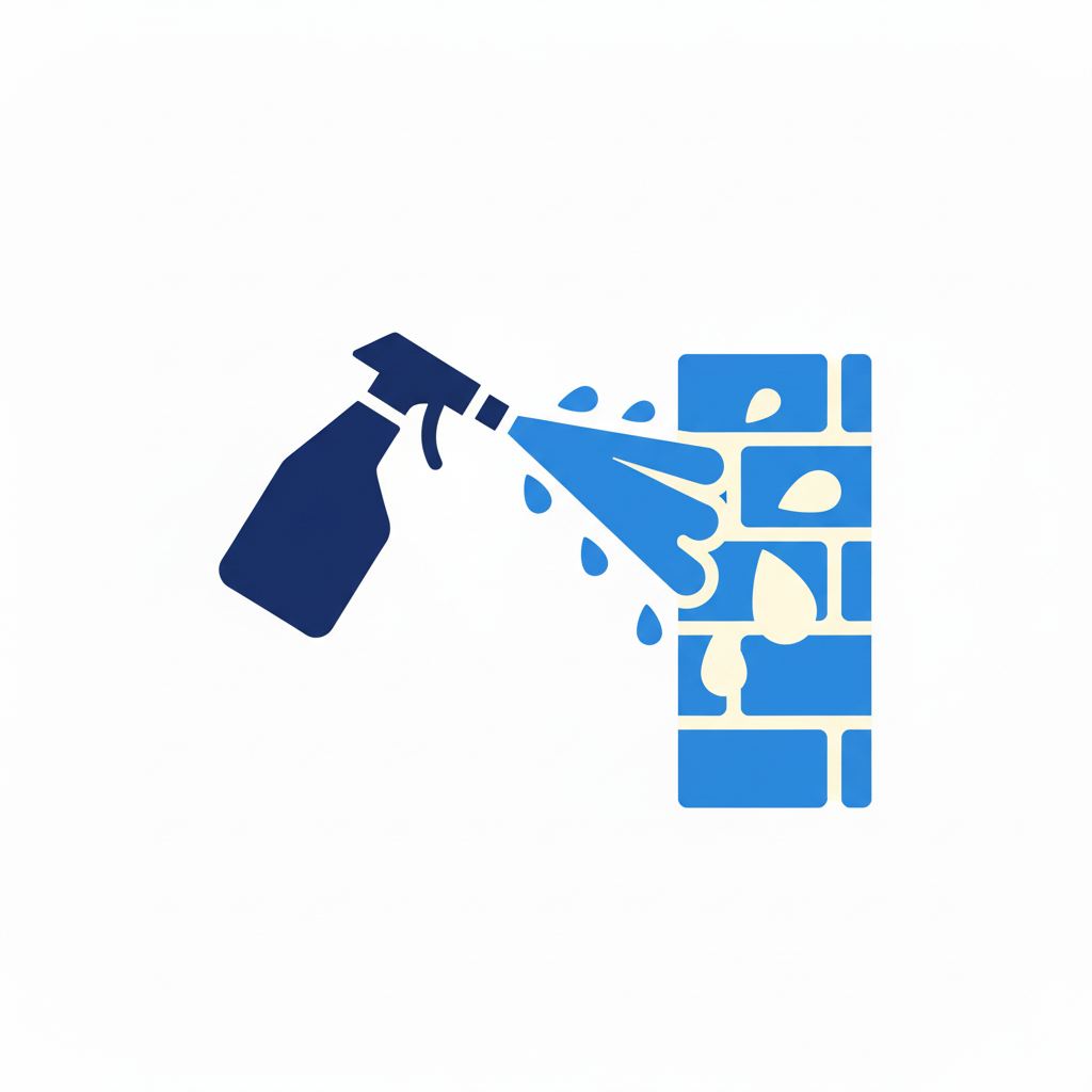 Ein professionelles Reinigungsmittel wird kontrolliert und großflächig aufgetragen. Es dringt in die Poren ein und löst organische Verschmutzungen wie Algen, Moose und Pilze sowie atmosphärische Ablagerungen.
